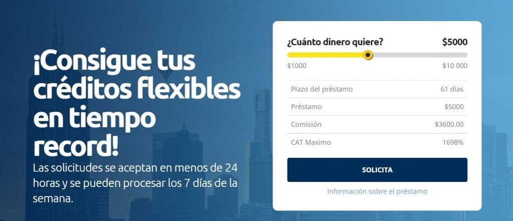 Tiene alta tasa de aprobación (90%) y fidelización (98.99% de cliente repiten). El proceso de solicitud es sencillo y se completa en 15 minutos. Los prestamistas transfieren el dinero en 24 horas.