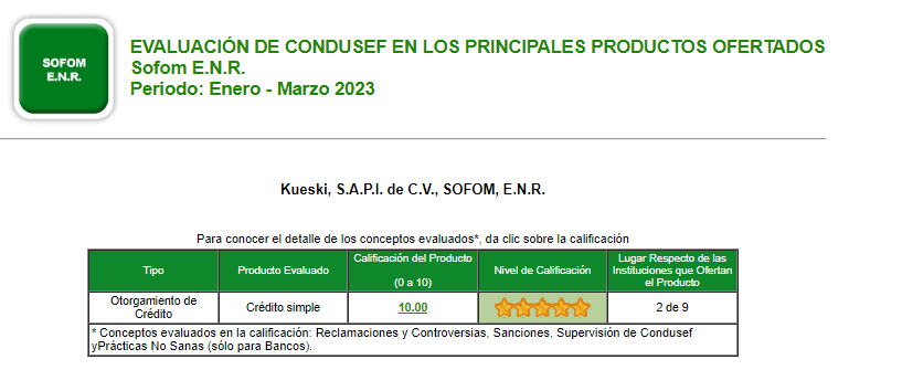 Es una empresa registrada como Sociedad Financiera de Objeto Múltiple (SOFOM) ante CONDUSEF, por lo que podemos decir que Kueski es confiable. Además, también está regulada por la CNBV debido a que ofrece un producto de pagos electrónicos.