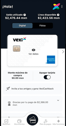 App muy fácil de usar para gestionar las tarjetas (Vexi App)