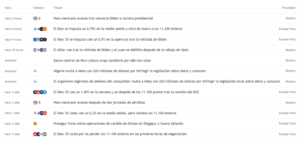 Los eventos relevantes y pronósticos de expertos son los que se evalúan en este tipo de análisis. Por eso hay diarios especializados que tienen una enorme sección de noticias de economía.