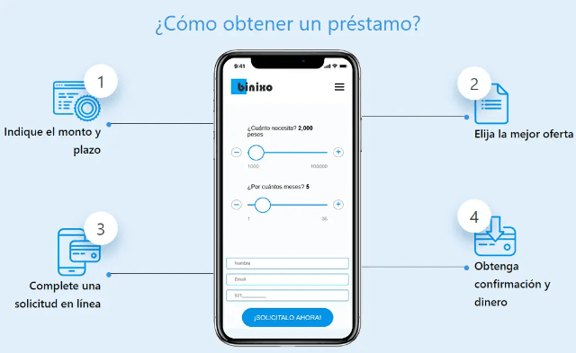 Proceso sencillo que funciona 24/7 con respuestas casi inmediatas y requisitos flexibles. No verifica el Buró de Crédito, lo que facilita el acceso a personas con mal historial, pero las altas tasas de interés disminuyen la satisfacción.