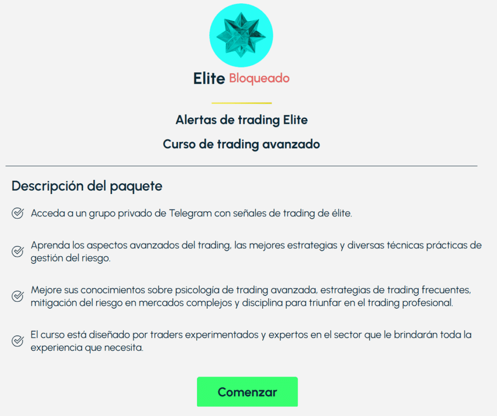 La plataforma ofrece un plan básico gratuito, pero los planes más completos (Premium y Elite) requieren un pago que se realiza a través de depósitos en ciertas aplicaciones para invertir. Además, no es transparente con los precios exactos.