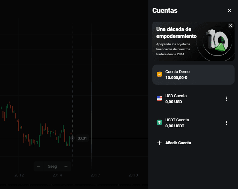 Esta cuenta se activa desde el momento en que se comienza a usar la plataforma. De hecho, no es necesario ni siquiera hacer un depósito o comenzar a hacer trading para probar la cuenta demo.
