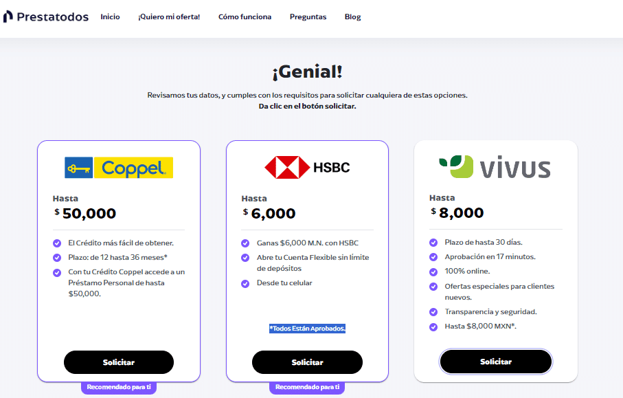 Prestatodos se enorgullece tener un índice de aprobación sea mayor al 80%. Lo que significa que al menos 8 de cada 10 personas reciben una oferta de financiamiento.