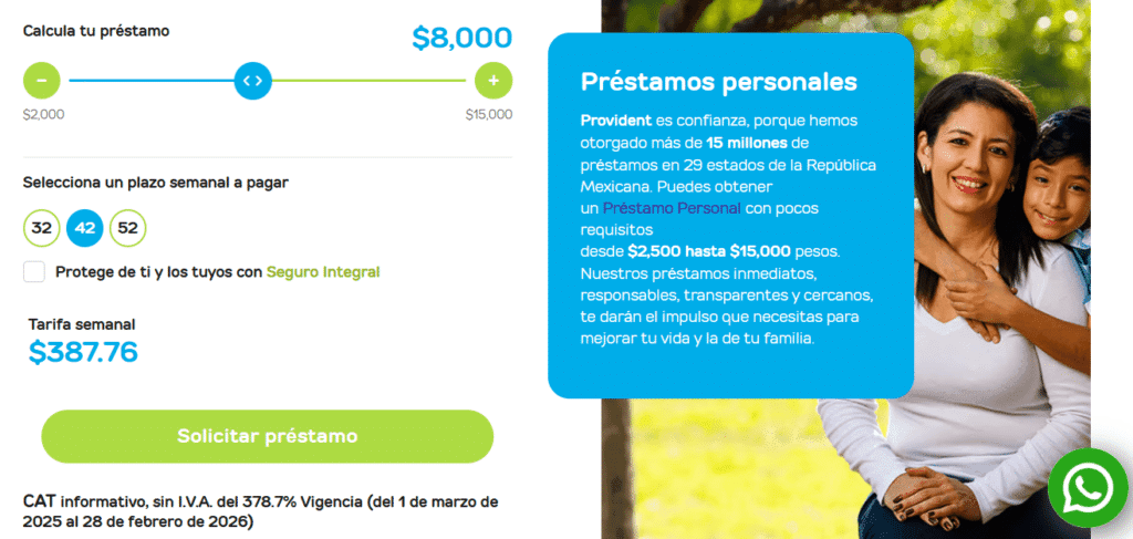 Como ves, los préstamos en Provident son completos y la información sobre ellos es transparente, con la notable ventaja de que sus préstamos son a domicilio.