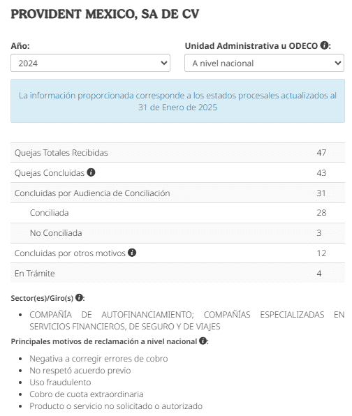Al tratarse de una empresa legal del tipo Sociedad Anónima de Capital Variable (S.A. de C.V.), Provident no está regulada por CONDUSEF.
