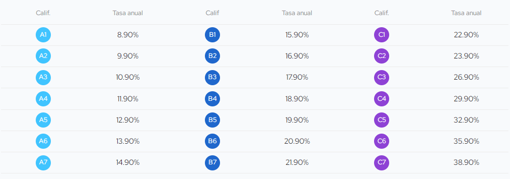 Ofrecen intereses que rivalizan con bancos tradicionales. Sin comisiones ocultas, sin pago anticipado y montos flexibles desde $10,000. Las mejores tasas las reciben los clientes con mejor perfil.