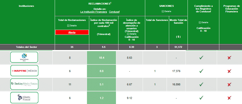 Como verás, al compararlo con compañías aseguradoras que mostramos abajo, los items de información para son distintos.