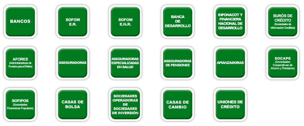 A continuación, todos los tipos de entidades sobre los que tiene información el Buró de Entidades Financieras.