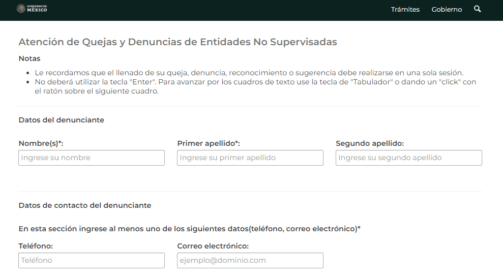 Ingresa a la web de Quejas y Denuncias de Entidades no Supervisadas. Allí verás un cuestionario para rellenar en donde se pide la información de los siguientes pasos.