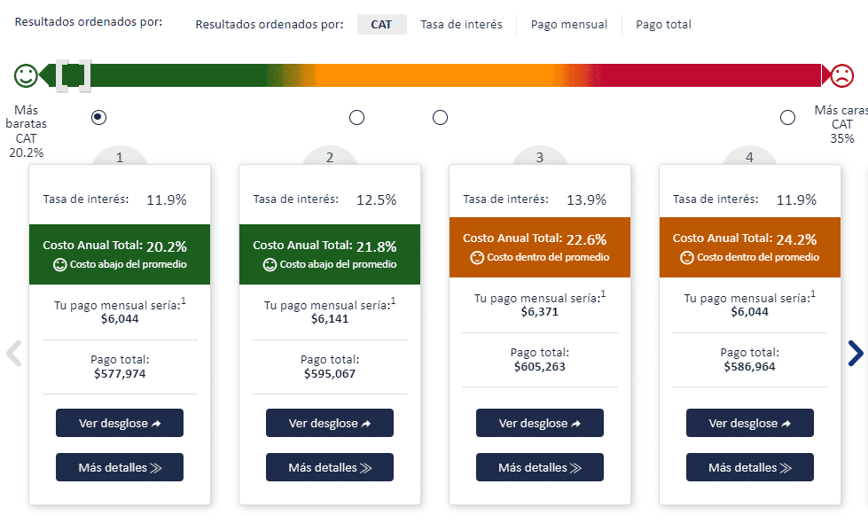 Sus resultados pueden variar ligeramente según tu perfil de cliente. Por ejemplo, un puntaje bajo en el Buró podría significar una tasa de interés más alta para ti.