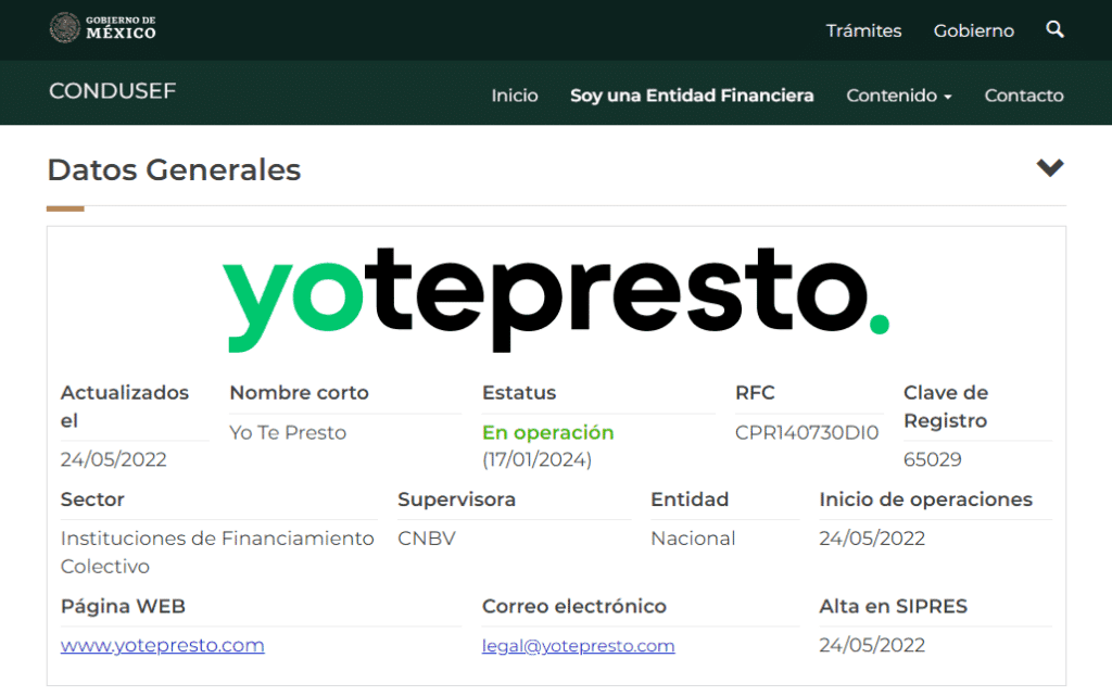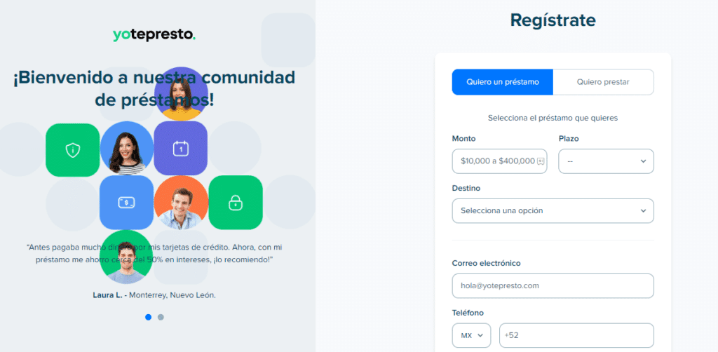 Yotepresto (Comunidad de Préstamos, S.A.P.I. de C.V.) es la primera plataforma de financiamiento colectivo en esta lista de empresas financieras confiables y también una de las más destacadas.