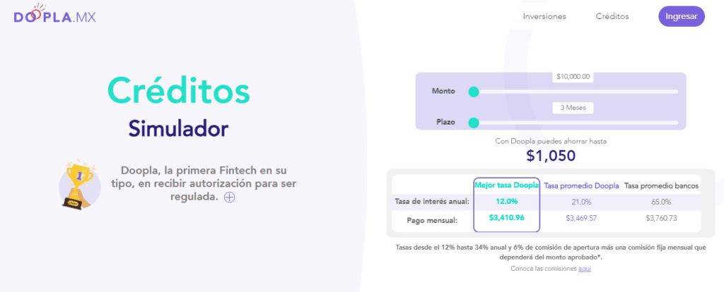 Doopla | entre 3 y 36 meses | desde 12% | Sí | De $15,000 a $300,000 |