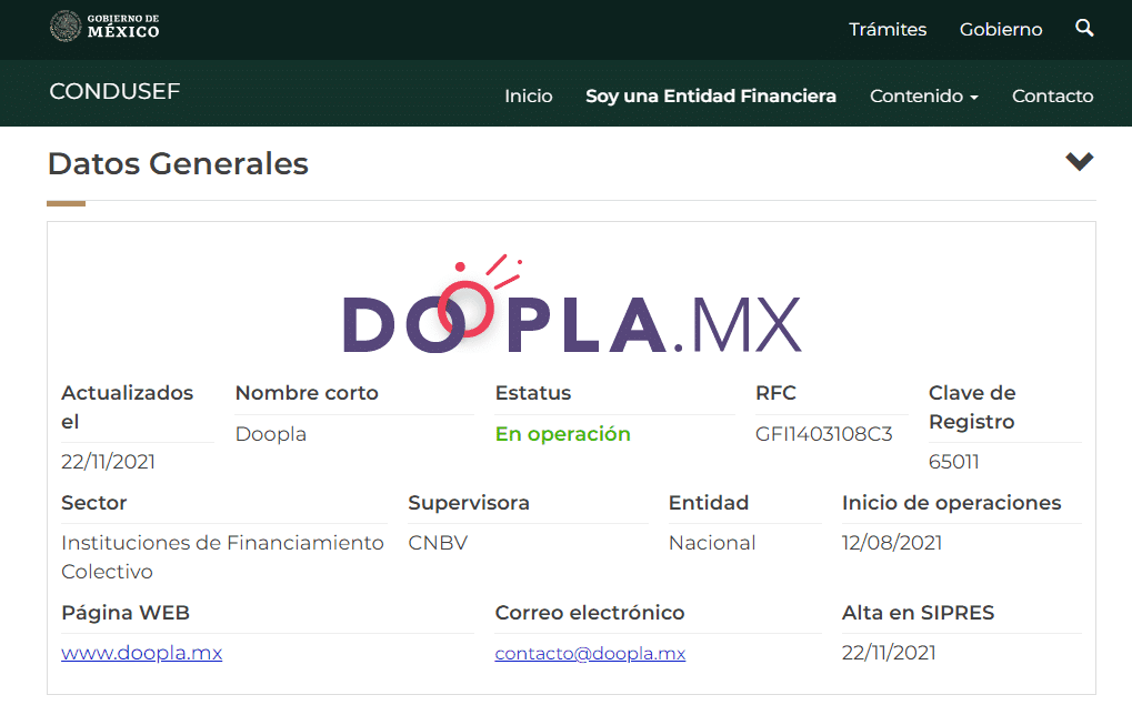 Doopla figura en la lista de financieras registradas en CONDUSEF, así que es una institución completamente fiable.