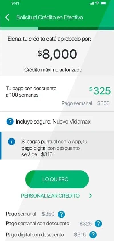 Su fuerte son los préstamos inmediatos, un tipo de financiamiento de montos bajos, pero de rápida aprobación. Si bien revisa el Buró de Crédito, no es excluyente y también acepta a usuarios con mal historial.