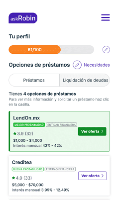 Para ello, AskRobin cuenta con una base de datos de préstamos en línea ofrecidos por decenas de financieras e incluso bancos. El proceso de solicitud es muy simple y no cobran nada por ello.